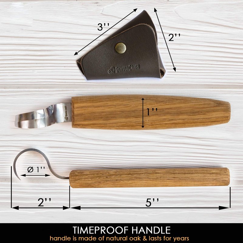 A rounding diameter of the spoon carving knife is 0.9 inches, which is perfect for small woodcarving projects. The hooked knife is suitable for both soft and hardwood.