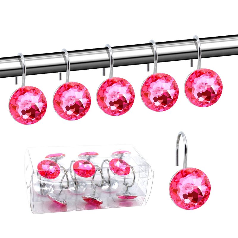 BEAVO Acrylic Fashion Decorative Home Rolling Shower Curtain Hooks Rhinestones Bathroom Bath Baby Room Bedroom Living Room Decor Set of 12 Rings (Pink)