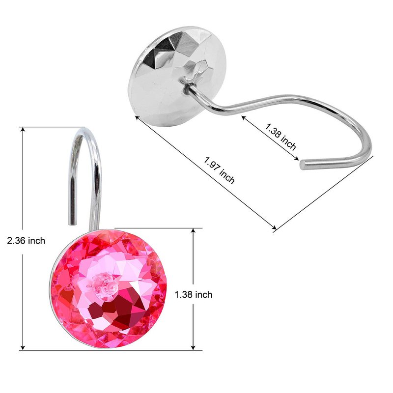 - Fit for standard size shower rods,Hook diameter of this shower hooks chrome is about 1.18" Rhinestone diameter is about 1.38". Available for 0.3"-1.1" (8-30mm) diameter rod .