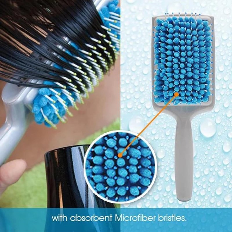 paddle brush Draw moisture and do not pull wet hair.hair drying comb Can help dry hair quickly.quick dry towel keeps the brush fresh.Fast Drying comb Lightweight design to reduce hand fatigue; Ergonomic handle is textured for extra grip.absornet hair brush Nice for your girlfriends, wife, mother or daughter.Water Absorbent Hair Comb It's suitable for short to medium length hair