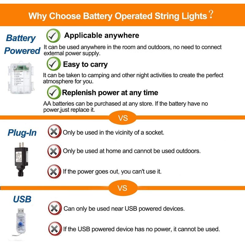 - 🔋Battery powered for Portability and Reliability:The rope light is powered by 3 AA batteries (excluded), so it is portable and can be mounted anywhere for ambience decoration and easy to replenish the power.