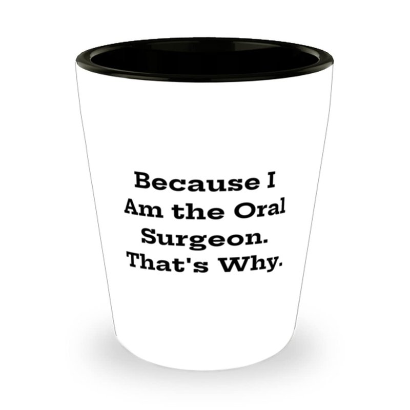 Because I Am the Oral Surgeon. That's Why. Shot Glass, Oral surgeon Ceramic Cup, Unique Gifts For Oral surgeon, Dental health, Toothbrush, Toothpaste, Floss, Mouthwash