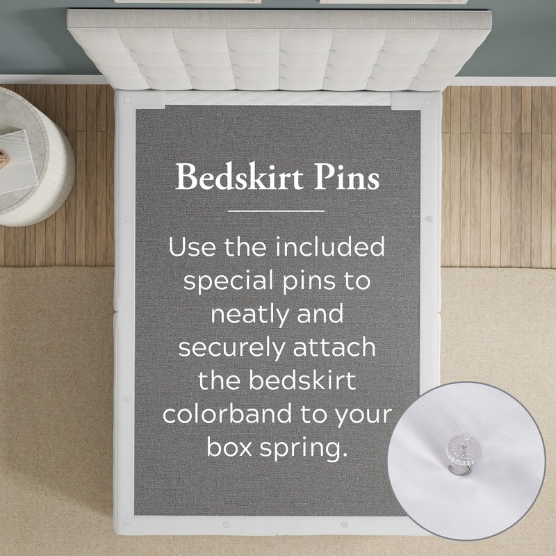 - Stays Put: The sturdy elasticized strips and mitered corners ensure the skirt stays in place without sagging or shifting over time. This innovative bed skirt does not have a traditional fabric platform, so the mattress does not need to be lifted