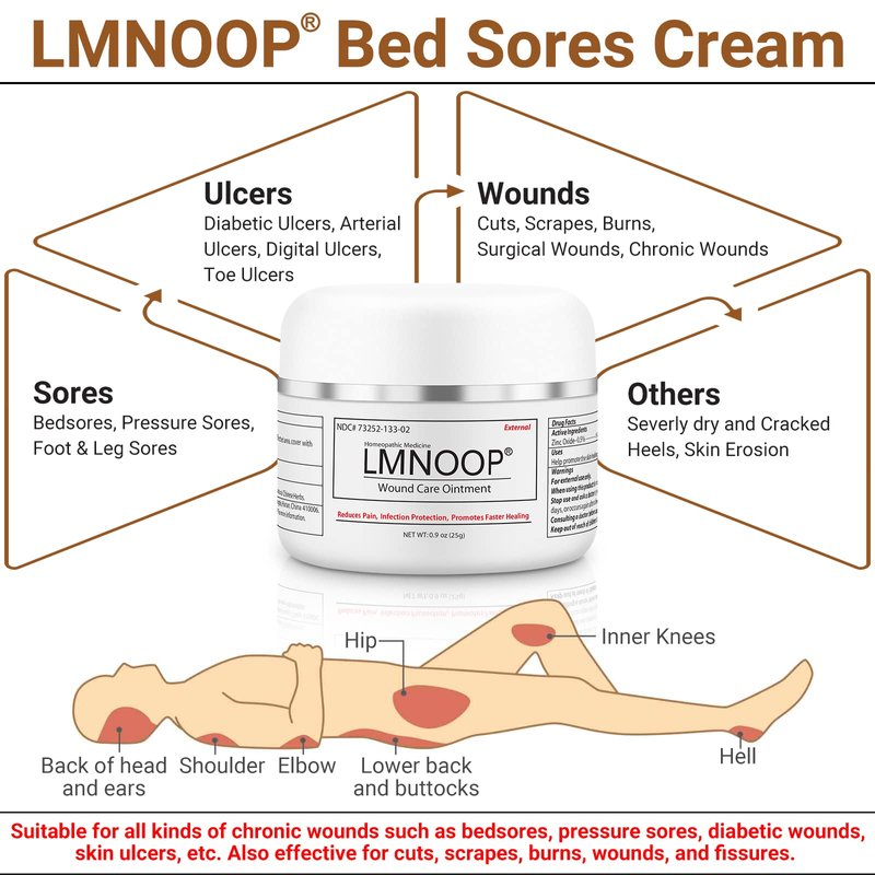 - EFFECTIVE FOR FAST RECOVERY – LMNOOP 24-hour infection protection medication antibiotics, antiseptics, absorb exudate, remove bacterial, promotes wounds healing. Effective for chronic wound treatment such as bedsores, pressure sores, diabetic wounds, skin ulcers, decubitus ulcers and venous foot & leg ulcers. A best bed sore home remedy ointment.