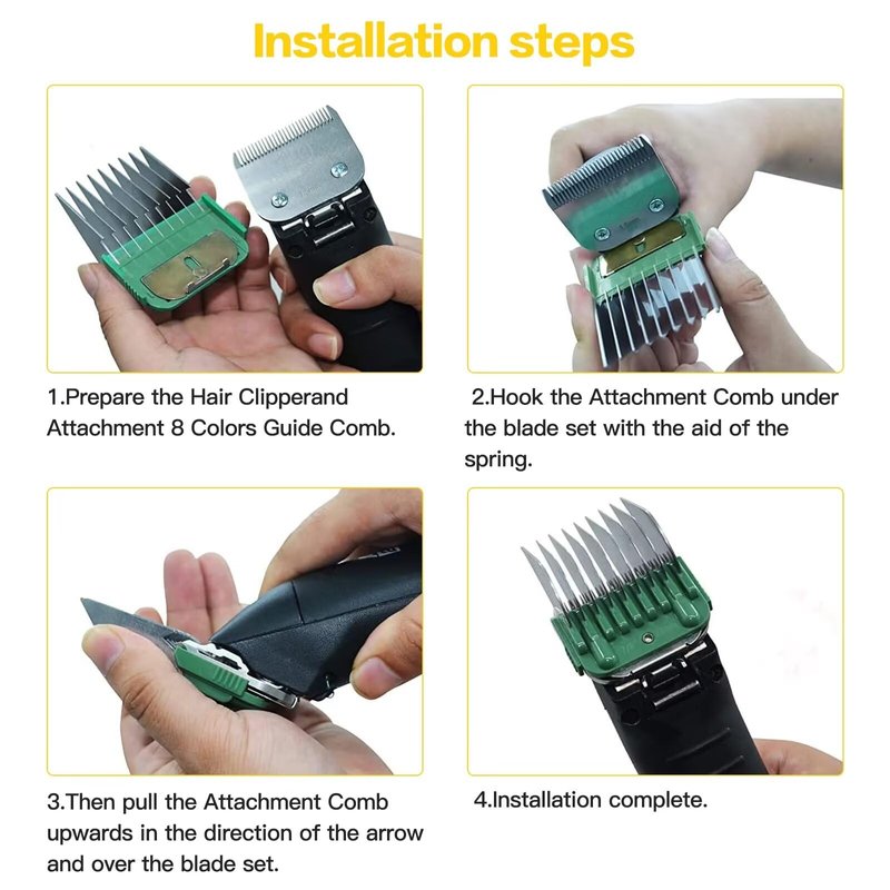 - ☀✦ Made of stainless-steel and ABS for durability. Stainless steel seizure is polished, without sharp corners, more durable and safe than ordinary plastic limit comb,also be more effective to prevent blade from hot
