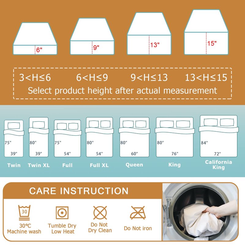 - Easy to Maintain and Reuse: Machine washable and reusable, caring for this mattress protector is a breeze.Designed to perfectly fit mattresses with a height of 3 to 6 inches. With a variety of sizes available including twin, twin xl, full, full xl, queen, king, and cal king, it's a versatile addition to any sleeping setup, whether in a dorm room, Airbnb, hospital, or home.