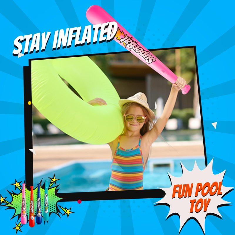 Inflatable baseball bats are made from high quality nice and thick vinyl material and features bright vibrant colors that kids enjoy. They stay inflated and your kids will love them. Recommended for ages 3+