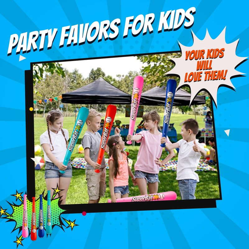 - GREAT FOR BASEBALL THEMED PARTY FAVORS Our baseball bat party supplies are sure to be a home run with your guests! These inflatable bats are fun for everyone kids to adults to enjoy! Perfect choice for goodie bags, inflatable party, party favors, prizes, baseball decorations, birthday parties, Birthday Favor Toy, beach ball party favors and much more