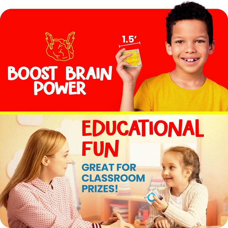 - 24 PIECE PARTY PACK! MINI BRAIN TEASER PUZZLE CUBES FOR KIDS : These challenging and rewarding mini brain teaser puzzle games come in packs of 24 and in a variety of different puzzles to solve. Each mini maze cube measures 1.5 x 0.75 inches and is great for all ages. These kids brain teasers are a great way to boost overall brain activity & increase memory power. Try to beat them all!