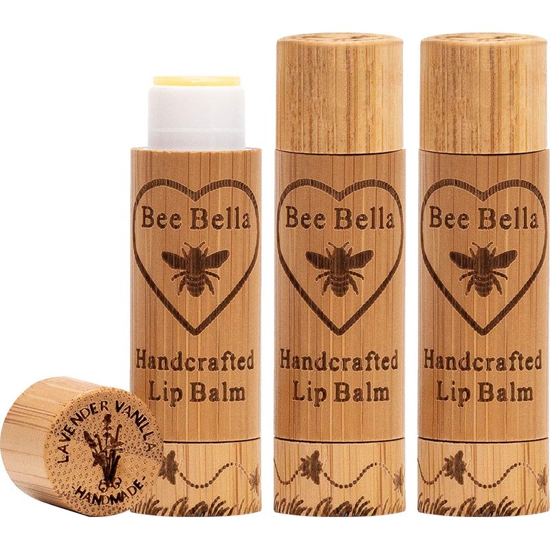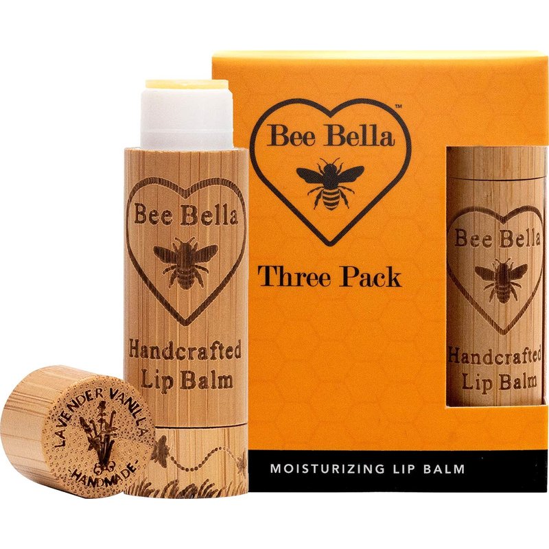 Bee Bella Lip Balm Lavender Vanilla Scent, (3 Pack), Valentine's Day Gift, Moisturizing Lip Care, 100% Natural, Beeswax with Vitamin E, Handmade in USA, Easter Basket idea