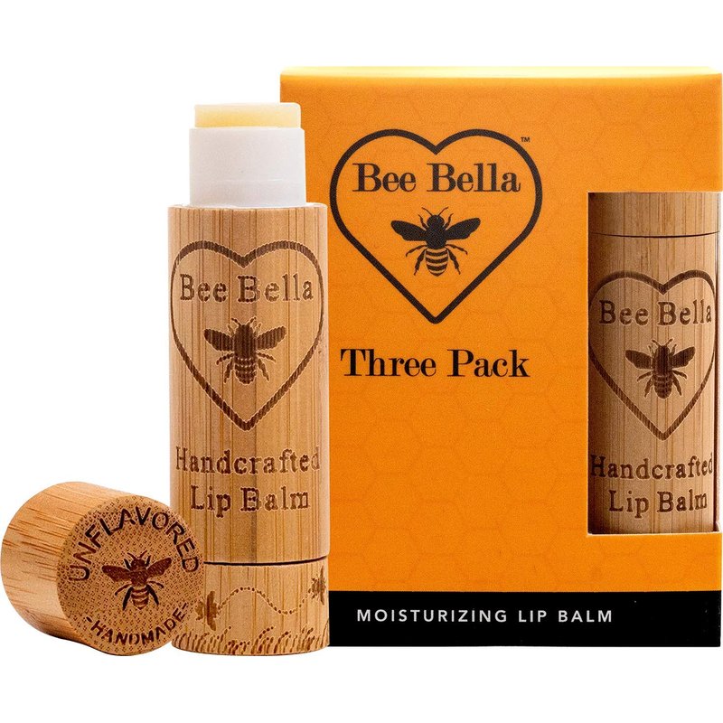 Bee Bella Lip Balm, Unscented (Unflavored), 3 Pack - Hydrating, Moisturizing Lip Care, 100% Natural, Original Organic Beeswax with Vitamin E, Handmade in USA