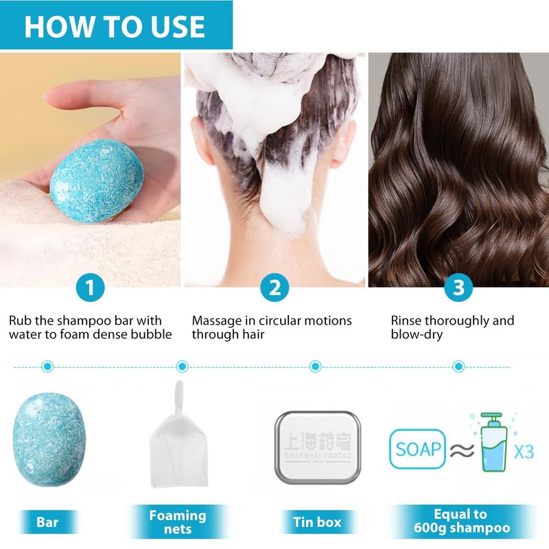 - All Hair Types: The shampoo bar soap is suitable for any type of hair including curly, dry, oily, frizzy, gray, and color-treated. Super rich with bubble, natural ingredients gently clean the hair and scalp, balances oil in scalp, nourishes hair roots, resulting in soft, strengthen, rejuvenated hair