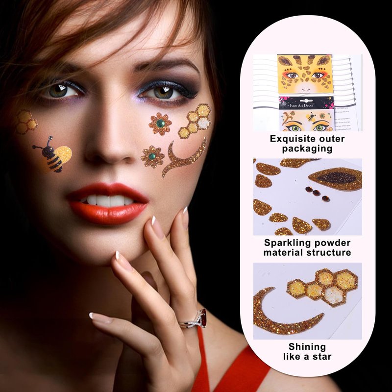 • You Will Get: You will get 1 sheet Bee Face Gem Sticker and 1 sheet Giraffe Face Gem Sticker Giraffe, measuring approximately 5.1*4.7 inches. You can use it to decorate your face and eyes, making you look cuter, and can make you the queen of any party.