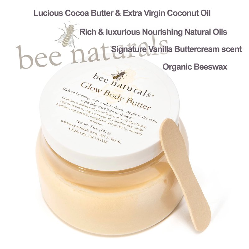 Bee Naturals Glow Body Butter – Shea & Cocoa Butter Blend for Deep Hydration, Radiant Skin, and Lasting Moisture – Infused with Organic Oils, Beeswax & Vanilla Mango Scent 5Oz – Cruelty-Free