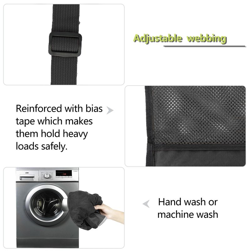 1.LARGE SIZE & STURDY:This sports drawstring backpack measures W 17.7"X L 25.5", which is big enough to carry all your soccer gear, sports gear,scuba gear bag,football gear,gym gear, swimming gear, beach gear,swim gear. All our swim bag is made of lightweight yet sturdy mesh material and reinforced with webbing tape, making it strong enough to pack heavy scuba gears, paddle board accessories. 2.FOLDABLE ZIPPER POCKECT & EASY TO CARRY: Extra zipper pockets of our mesh drawstring backpack make it easy for you to pack phones, keys. Besides,you can easily fold our mesh beach bag into the zipper front bag, which takes up hardly any space that can easily fit in a purse, pocket.You will always have a mesh swim bag with you whether you go to gym or beach trip.Our mesh drawstring bag is perfect for gym bag,swim bag,basketball bag,soccer bag,sports bag,beach gear bag. 3.BREATHE MESH CONSTRUCTIONS:The mesh gym bag Design keeps sand and water away for quick drying, allowing you to find what you need quickly. 4.WASHABLE& REUSABLE:Our large mesh swimming equipment bags with drawstring are machine washable and dry quickly, throw it in machine, save your time, free your hand. SUGGESTION: To extend the mesh drawstring cinch bag's service life, we recommend hand washes in cold water and air drying.