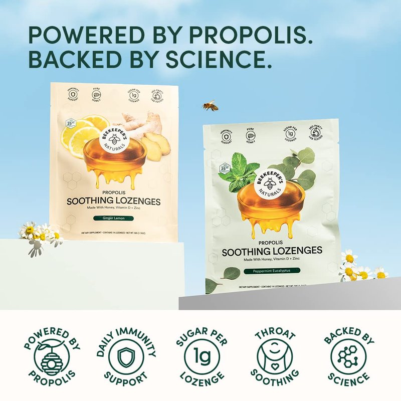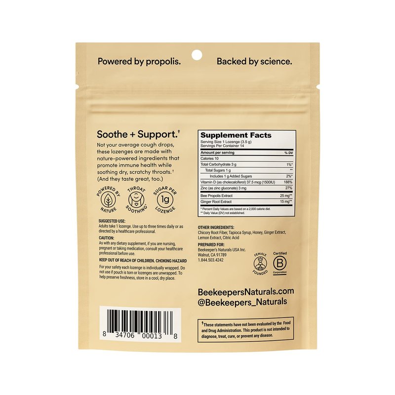 Beekeepers Naturals Ginger Lemon Lozenges, 14 Ct