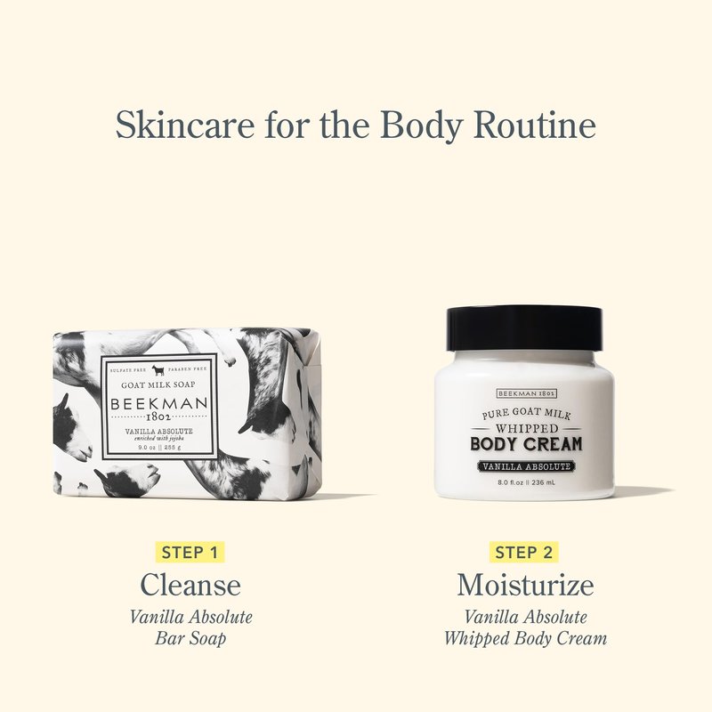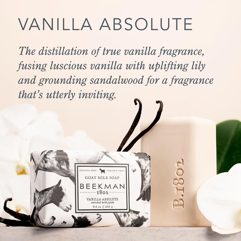 Beekman 1802 Goat Milk Body Soap Bar, Vanilla Absolute - Scented - 9 oz - Nourishes, Moisturizes & Hydrates - 100% Vegetable Soap with Lactic Acid - Good for Sensitive Skin - Cruelty Free