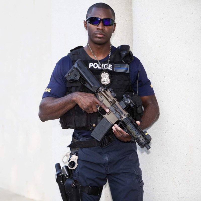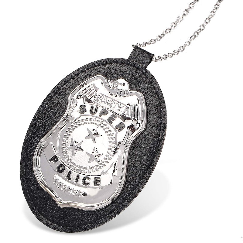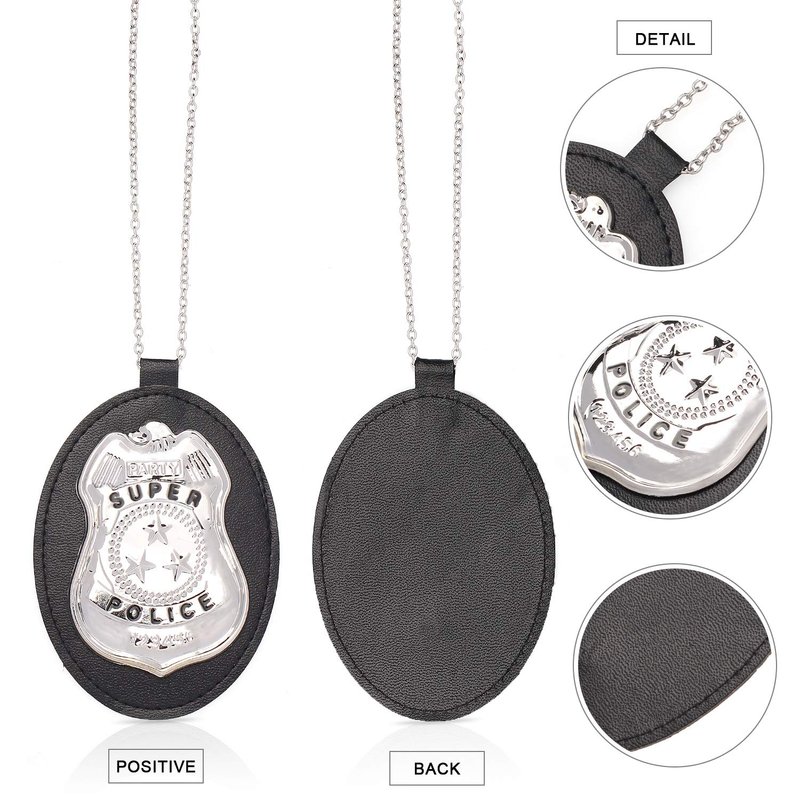 - ★Police Badge - "Super Police" written which is sewn onto a high quality black faux leather background, badge is attached to a leather mount and a removable silver chain