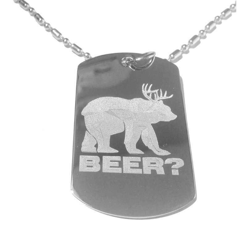Beer Deer Bear Mac Funny Tv Pong Logo Symbol - Military Dog Tag, Luggage Tag Metal Chain Necklace