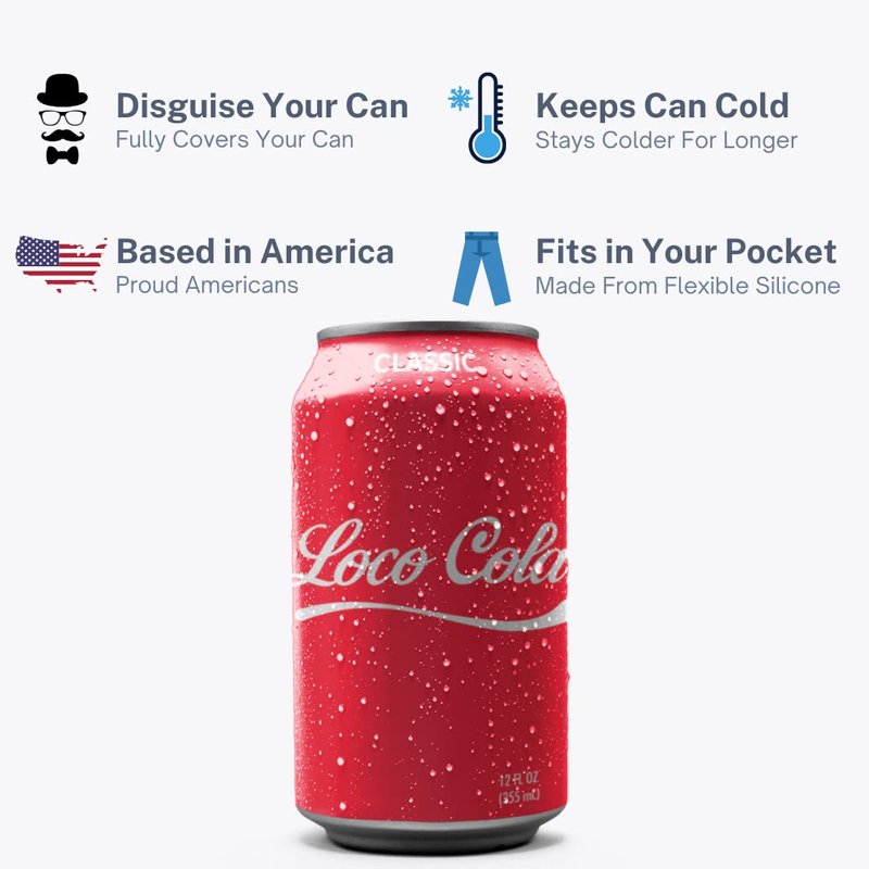 Beersy Silicone Sleeve Soda Can Cover - Insulated Silicone Can Sleeve - Multi-Purpose Can Insulator - Tight-Fitting Drink Skin - Novelty Drink Holder for Sporting Events, Fits 12oz Cans (Loco-Cola)