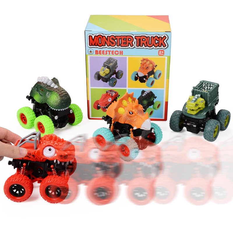 Beestech Dinosaur Toys for 2 3 4 5 Year Old Boys, Push & Pull Friction Powered Dinosaur Monster Truck Vehicles for Toddlers Preschoolers Birthday Gifts