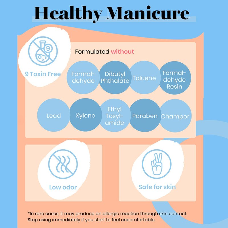 - Healthy: 9 Toxin Free Ingredient makes it safe and has low odor. (PLEASE NOTE: We strive to make our digital color swatches as accurate as possible to the actual product color but due to different monitor settings and electronic devices colors may differ slightly.)