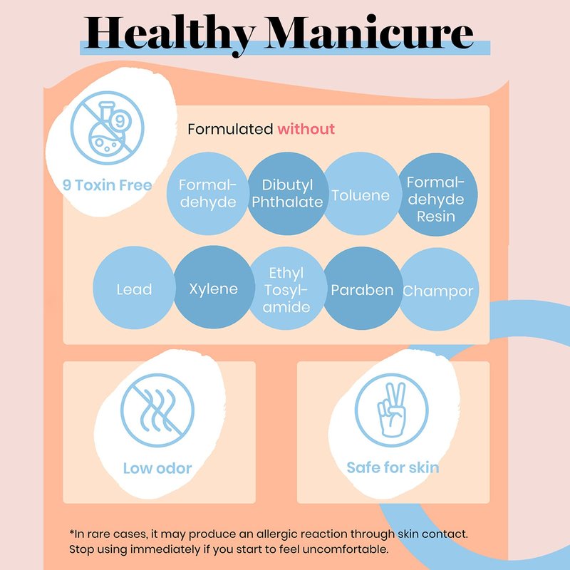 - Environmental & Healthy: 9 Toxin Free Ingredient makes it healthy and low odor. No harsh ingredients or adhesives that lead to damaged nails