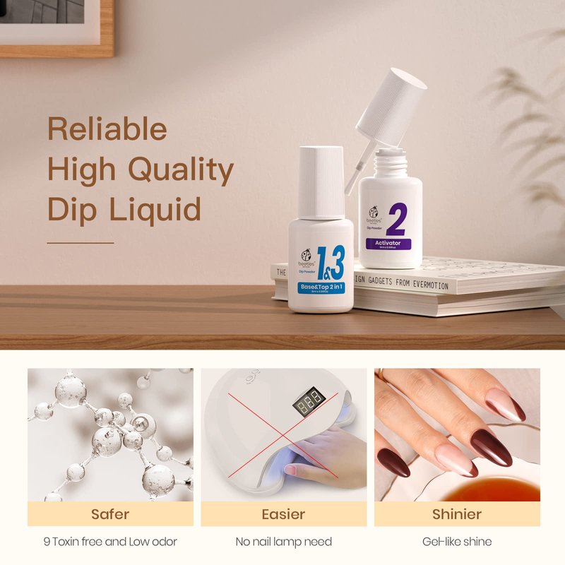 - HIGH-QUALITY LONG-LASTING: Beetles' dip powder nail art kit is long-lasting and chip-resistant. Compared to traditional nail lacquer, gel polish, and traditional acrylic systems, it doesn't need a UV light to cure. It looks natural, lightweight, and has impeccable shine, keeping the nail art gorgeous and shiny for about 3 weeks or more.