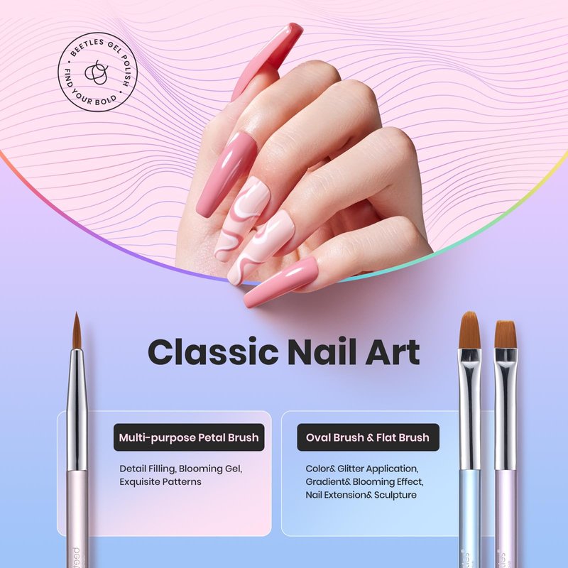 - 【What You Get】:Our Gel Nail Brushes Set includes Petal Painting Brush and long Liner Brush*1,Flat Brush and medium Liner Brush*1,Oval Brush and Short Liner Brush*1.