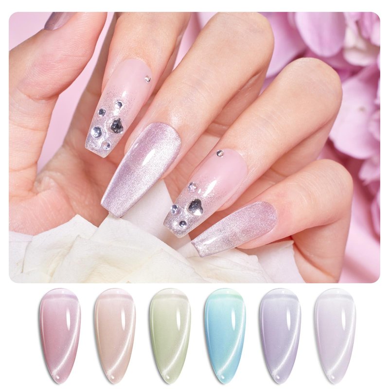 This beetles gel nail polish set includes 6 x jelly cat eye gel polish and 1 x magnet. Women could enjoy the fun of DIY Nail Art Design and manicure at Home. The fun of cat eye nails lies in how customizable they can be. All you need is a tiny magnet, which is included in the set as a gift. There are so many effects that can be created with this exquisite set, keeping up with the current fashion. Go enjoy the wonderful festival with your eye-catching nails!