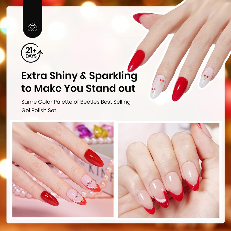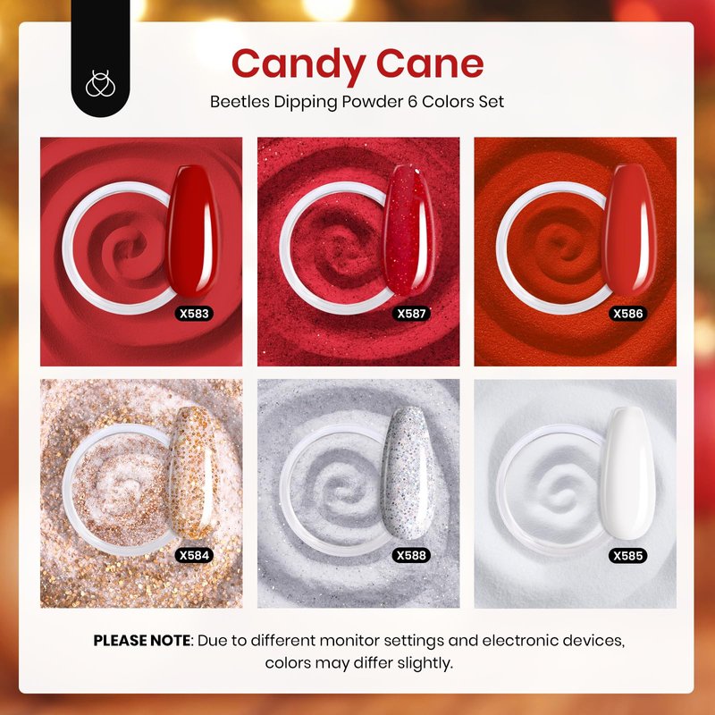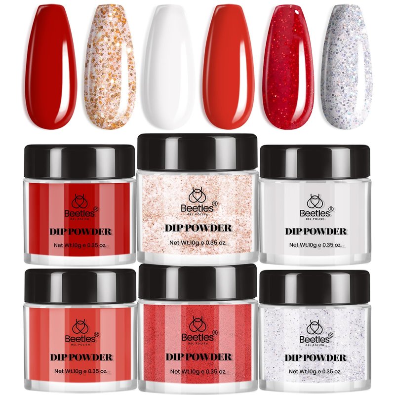 - Gorgeous Christmas Red Dip Powder for Nails: This premium dip powder nail kit covers three different shades of red, as well as pure white, glitter silver, and sparkle champagne. Perfect for creating a classic, elegant, or retro style, it's ideal for any occasion,such as Christmas, Thanksgiving, Mother's Day, etc.