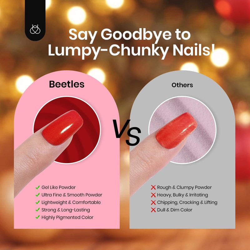Looking for a vibrant and eye-catching look for your nails? Look no further than our red dip powder for nails! Our dip powder nail kit from Beetles Gel Polish provides everything you need for an easy and long-lasting home manicure. With high-quality ingredients and a lasting hold of 21 days or more, Beetles Dip Nail Powder is a healthy and harmless choice for anyone looking to achieve a statement-making manicure. And with no need for a UV lamp curing, this dip nail powder is incredibly easy to operate – perfect for both beginners and seasoned pro's alike! glitter dip powder for nails