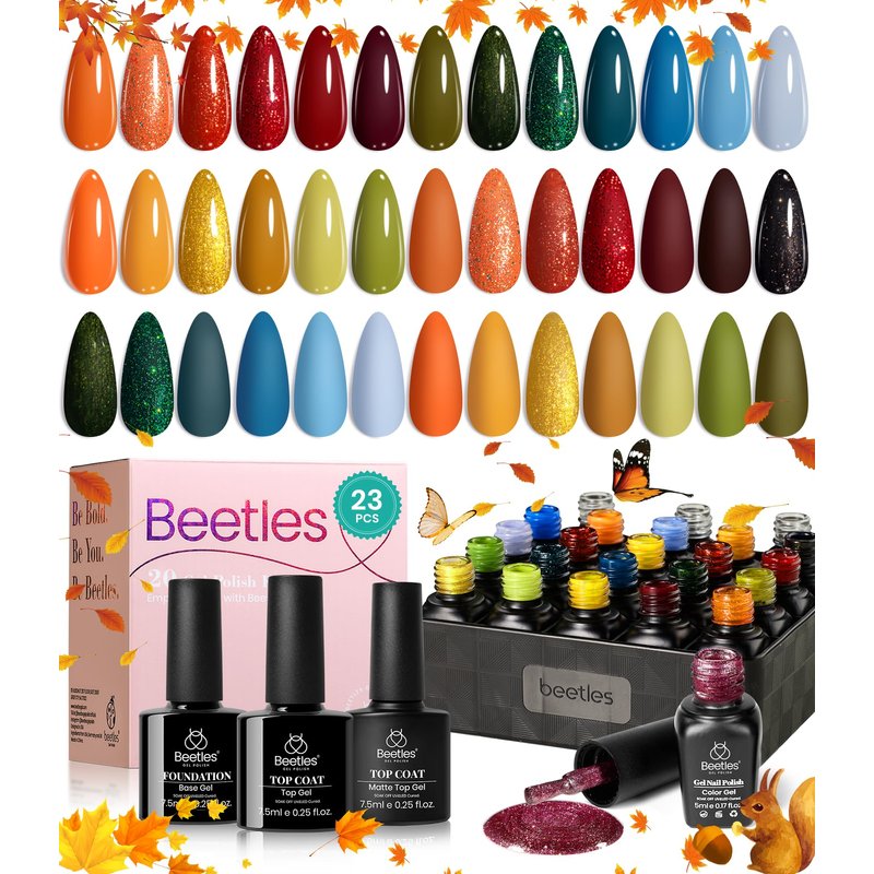 - Ideal Gift for Her: Beetles nail gel polish kit comes in a beautiful gift box. They are appropriate for any holiday or special event, such as a birthday, holiday, anniversary gift set. No more struggling to decide which colors to select. Glam and glitter nail designs can be freely finished with these vibrant color gels.