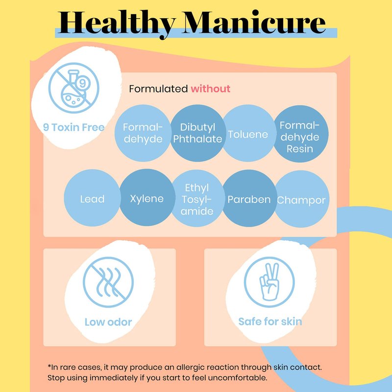 · 9 Toxin Free formula, easy and safe to apply.