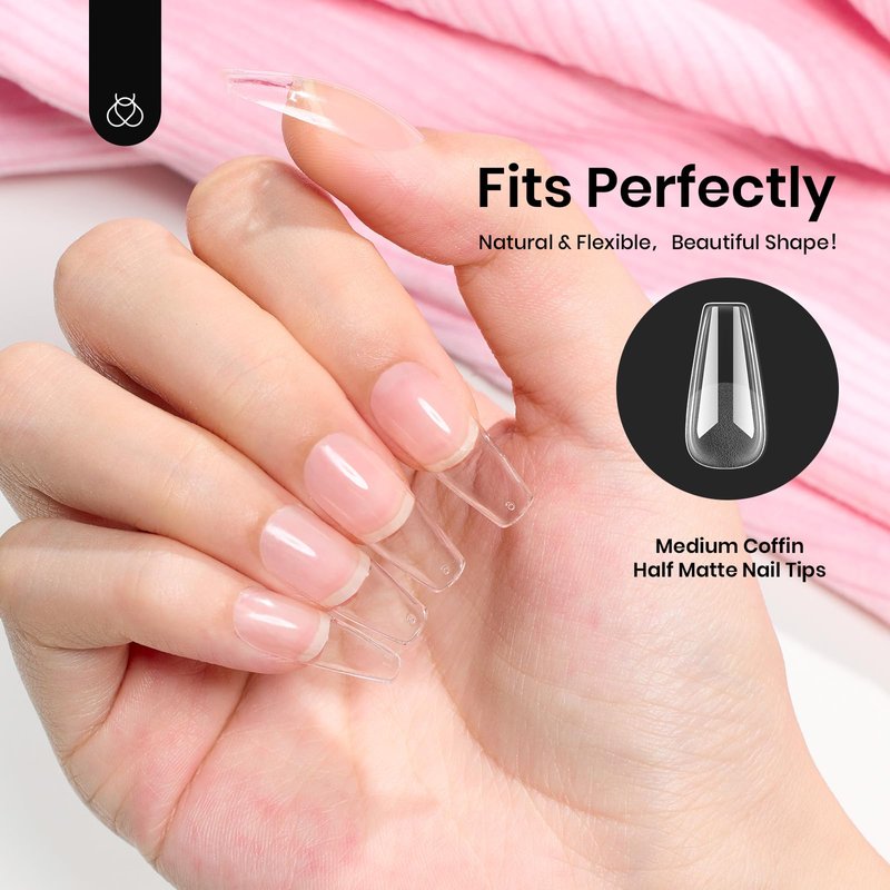 Beetles Gel Nail Tips 504Pcs Coffin Medium Easy Nail Extension Nails Pre Shaped Half Matte Nail Tips Press on Nail Gel Nail Tips Gelly Tips Full Cover False Nails for Gel Art Polish