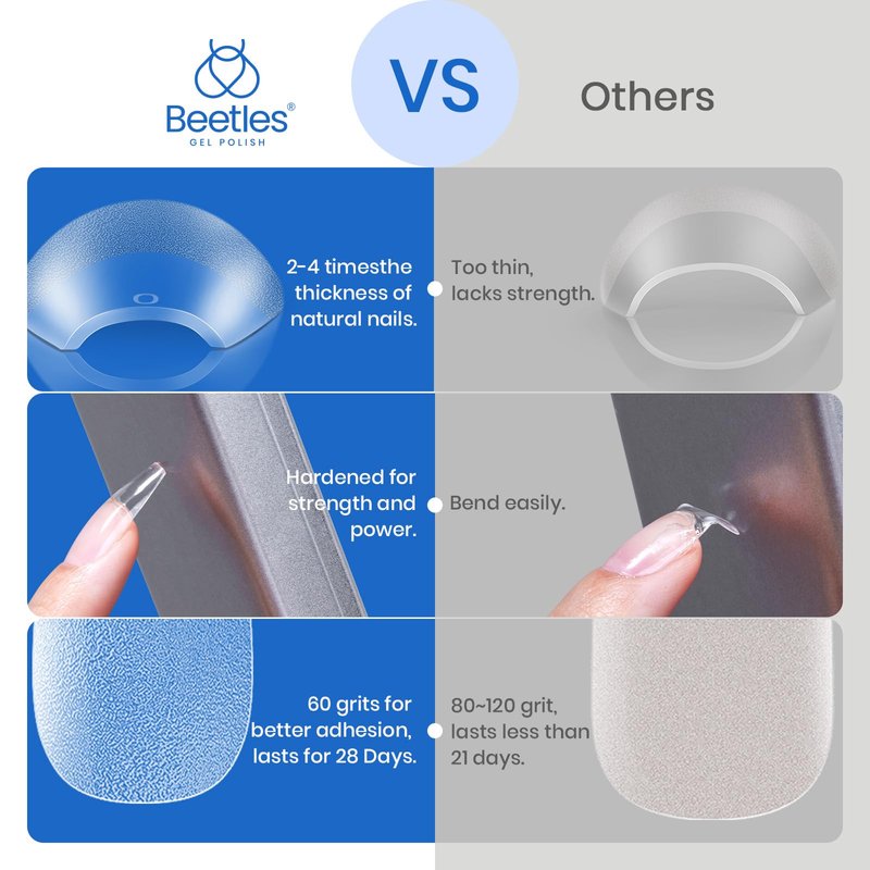 - 【NO Shaping and Filing Needed】: Upgraded double-sided fully frosted nail tips for a better fit on your natural nails, Beetles half Matte Nails are Pre-shaped and Pre-filed, No need to file and buffer anymore, which makes the manicure process easier and faster, but makes the nails last longer.
