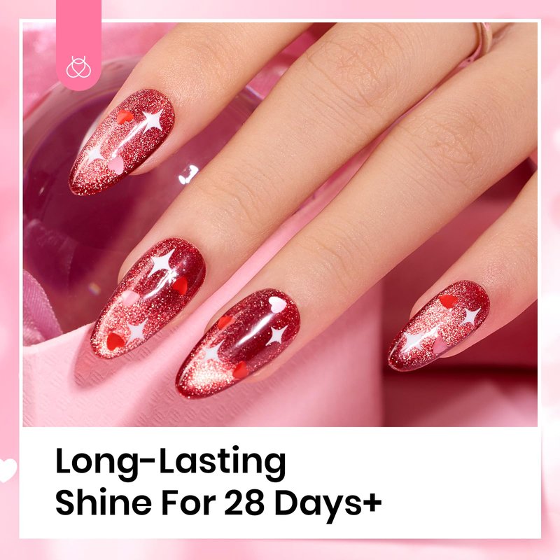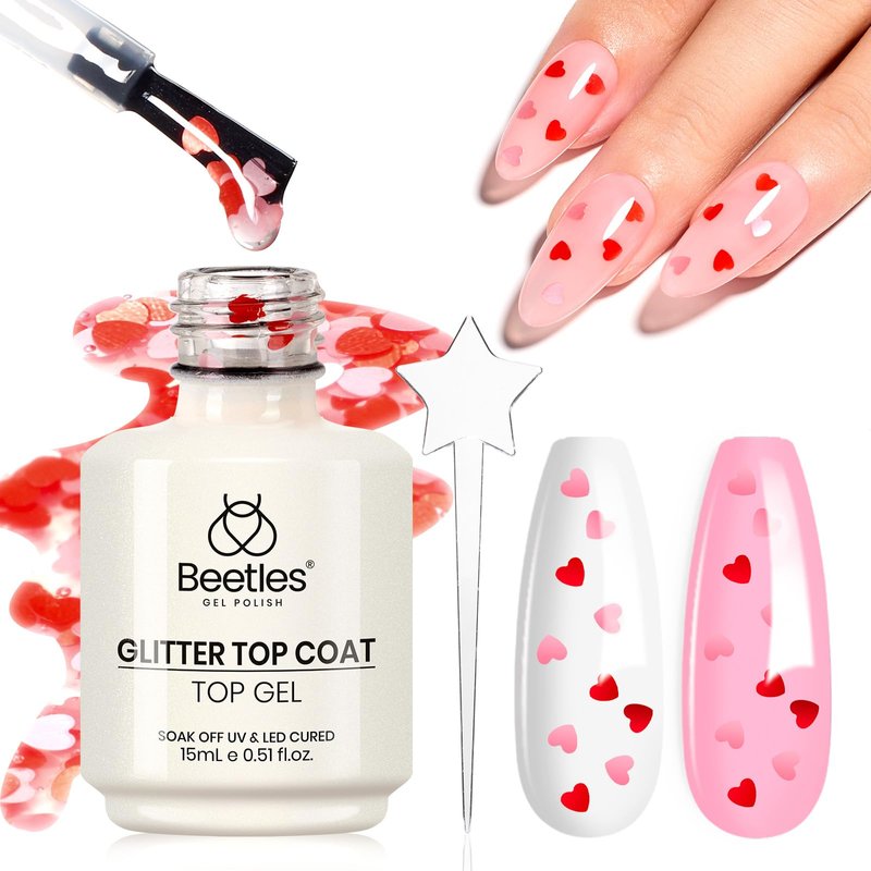 - 2024 Present: Beetles Red Heart Top Coat, the functions of glitter and sealer are combined to save you time, only needs to be applied once and makes your nails shine like the Northern Lights, accommodates all shades, pair with a variety of colors and add a touch of pizzazz, perfect dating nails top coat