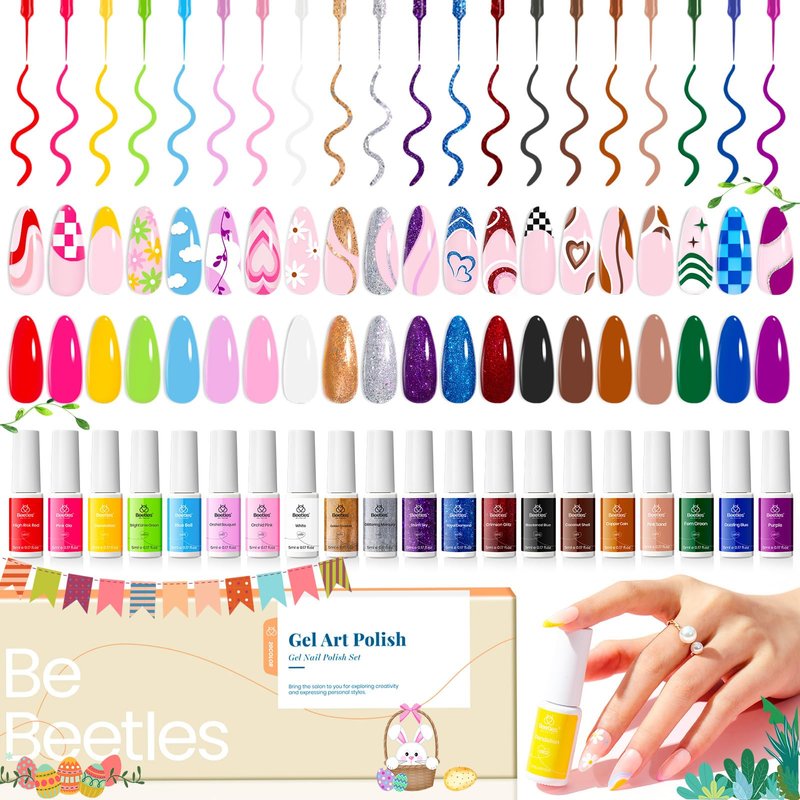 beetles Gel Polish Nail Art Gel Liner Nail Polish Set 20 Colors Spring Pastel Gel Polish Pink Blue Brown Easter Gel Nail polish Soak Off UV Gel Built Thin Nail Brush in Bottle Gift for Women