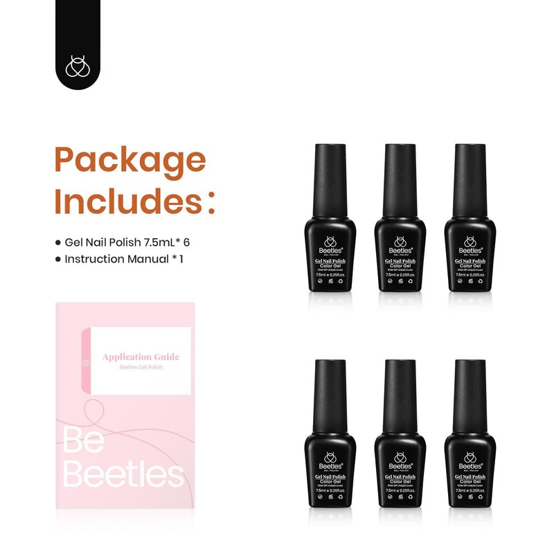 - Healthy and Glossy Shine: Beetles 6pcs gel nail polish kit are made from 9 Toxin Free Ingredient which makes it safe and has low odor. With good tenacity and highly pigmented, beetles premium gel material bring you brilliant shine finish, smooth appearance and flawless coverage.This item is UV gel. It is still sticky after curing. It must be used with a base coat and top coat! This item does not include base&top coat, which needs to be purchased separately.