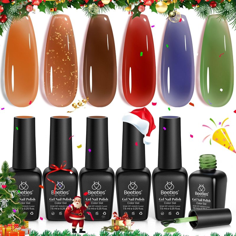 beetles Jelly Gel Nail Polish 6 Colors Transparent Gel Polish Set Brown Red Blue Green Orange Fall Nail Polish Soak Off LED UV Curing Manicure Kit Gift for Women
