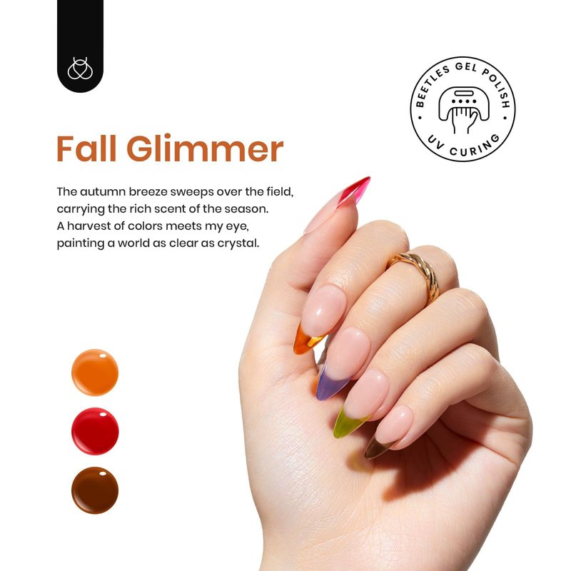 - Personal Style: This 7.5ML jelly brown orange green red blue gel nail polish set is inspired by Glimmer. You'll be dizzy with delight wearing this jelly autumn gel nail polish. This Jelly gel polish is a semitransparent nail gel. One layer, two layers and three layers are different effect.