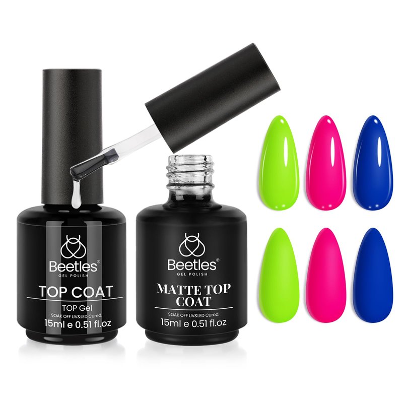 - What You Get: Beetles Gel Nail Polish Nail Set includes 1 pcs Glossy No Wipe Top Coat and 1 pcs of Matte Coat for gel nail manicure. Colour Gel Polish NOT included!!!!! The set is suitable for beginners and professionals, and is long-lasting for 28+ days. The flexible top coat avoids nicks, chips, and smudges.