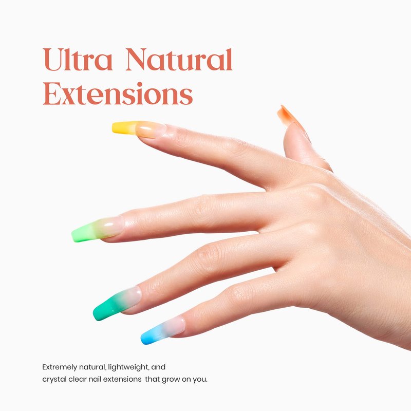 - Perfect Effect: Clear Nail extension gel makes your nails look natural, with a pretty length and neatness. It is suitable for creating nail extensions in different shapes like square nails, oval nails, coffin nails, or French nails, also perfect for doing French nails with the white one.