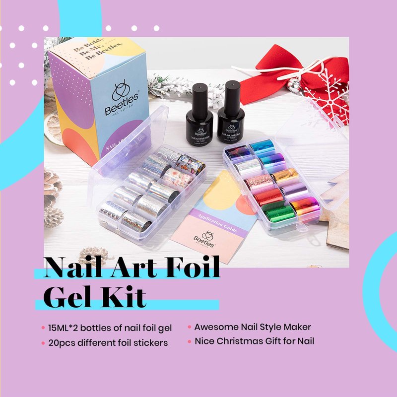Beetles Nail Art Foil Glue Gel with 20Pcs Nail Foil Stickers Set helps you DIY your unique nail art design in minutes. Easy to apply and perfect for nail art beginners. Fast and convenient to do your own nail style.