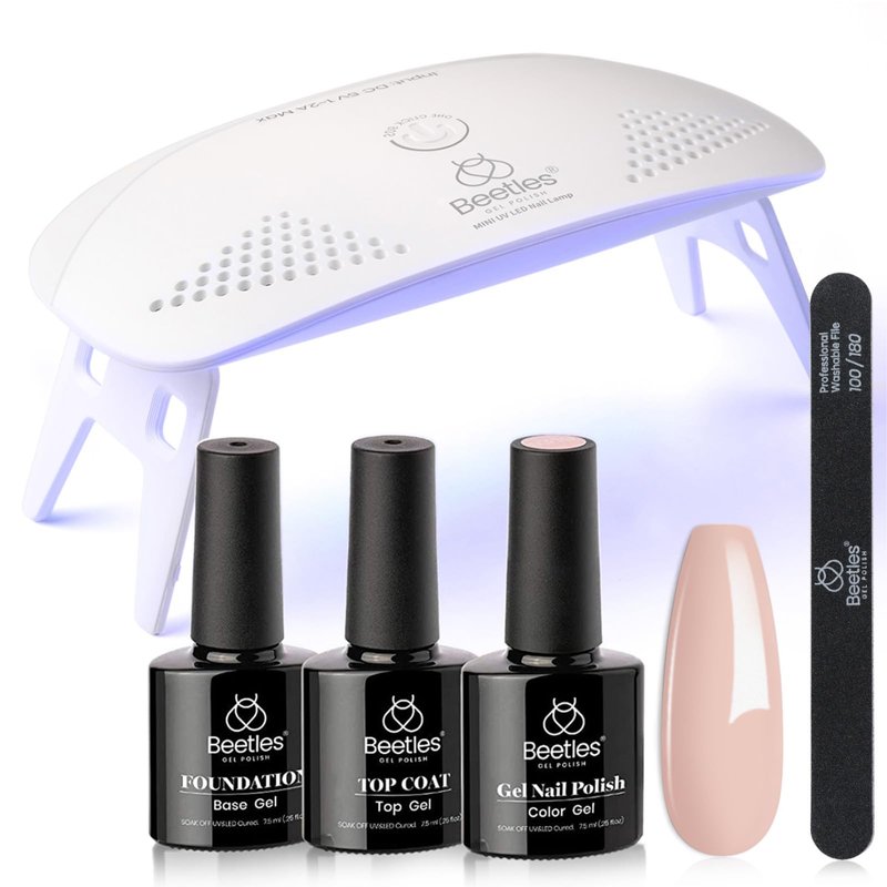 Beetles Nude Gel Nail Polish Kit with UV LED Light and Base Gel Top Coat Starter Kit, Soak Off Popular Nude Gel Polish Set with Nail Lamp Nail File for DIY Home Manicure Gift for women