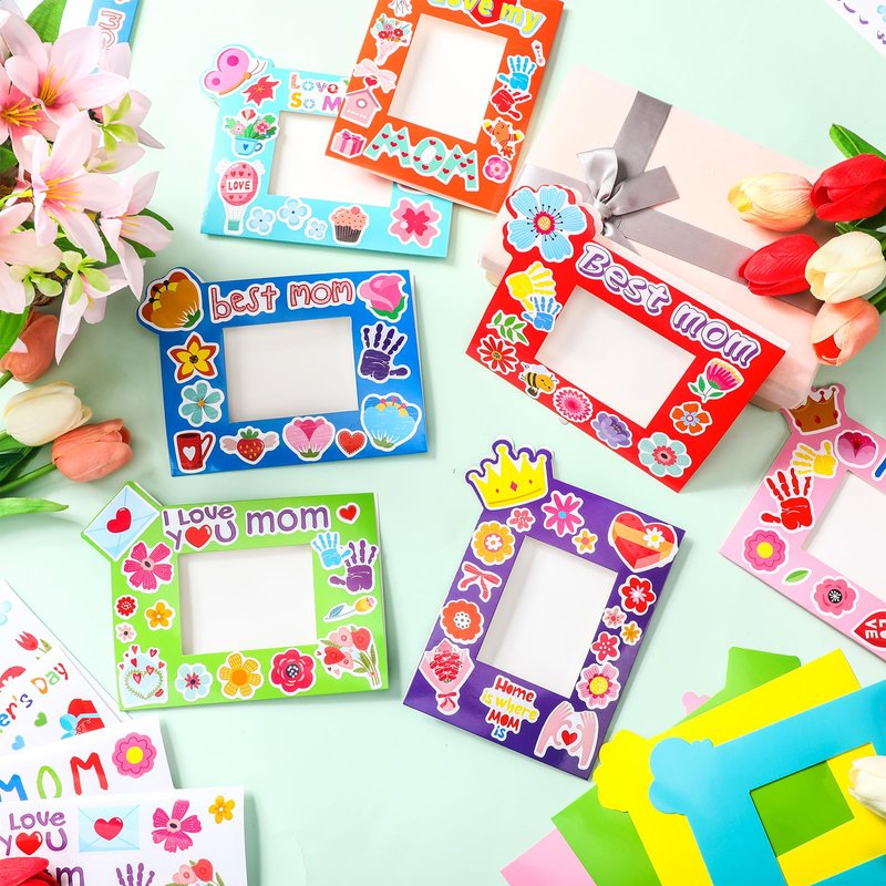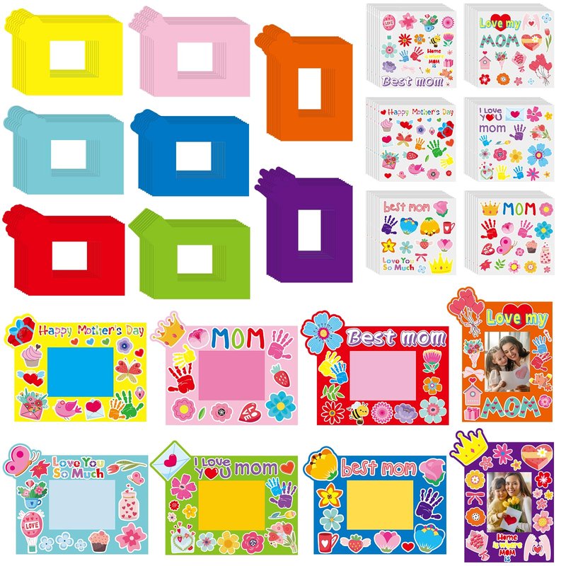 - Mother's Day Craft: you will receive 48 sets of Mother's Day picture frame craft kits, 8 styles, 6 pieces each, come with 48 stickers, 6 styles, 8 pieces each, rich quantities and styles for personalized photo frames can be made as a heartfelt gift for mom on Mother's Day