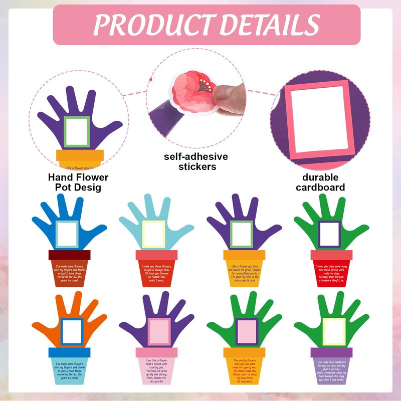 Beeveer 96 Pcs Mother's Day Hand Picture Frame Crafts DIY Handprint Flower Pot Hand Keepsake Picture Frame Craft Gifts with Flower Stickers for Spring Party Home Activities