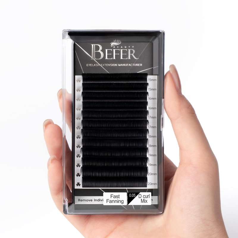 - Easy to work with: Each trays of Befer Beauty's Volume lash extensions is 100% hand glued, and the special craftsmanship makes it's easy to apply without Fall Apart. Our Easy Fan Lashes come off the strip very smoothly and easy to fan, Friendly to Beginner