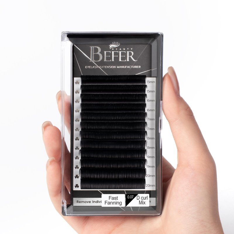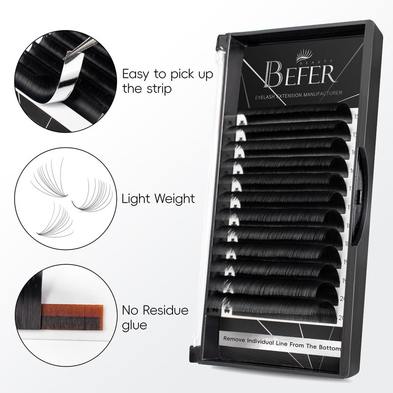 - Easy to work with: Each trays of Befer Beauty's Volume lash extensions is 100% hand glued, and the special craftsmanship makes it's easy to apply without Fall Apart. Our Easy Fan Lashes come off the strip very smoothly and easy to fan, Friendly to Beginner