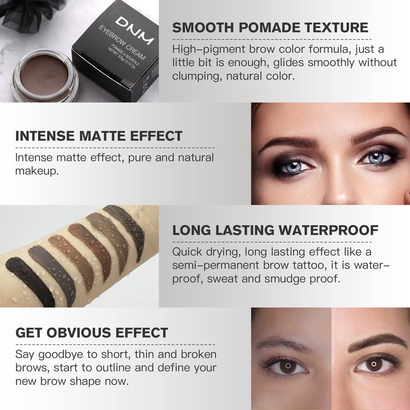 - 【High Pigment & Long-lasting】Our eyebrow pomade contains high-concentration pigments, allowing you to achieve the effect of applying multiple layers of other eyebrow pomades with just a light application. Its long-lasting formula eliminates the need for frequent touch-ups, while its pigmentation creates thicker, more dimensional brows that add a highlight to your overall makeup look.